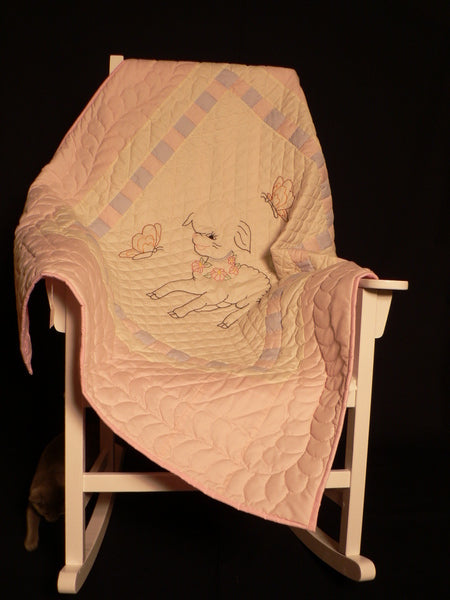 Lamb with Pink Border Crib Quilt